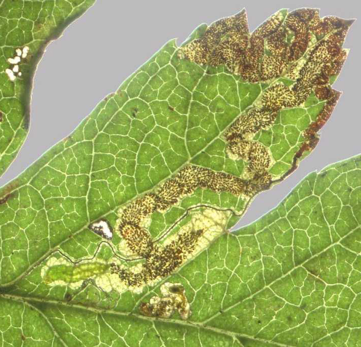 Observations: The larva mines the leaves of Hawthorn, Apple, Pear.