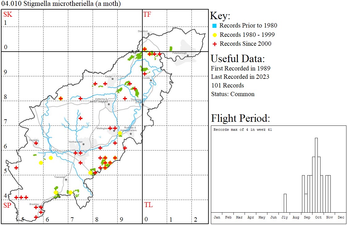 Observations: The larva mines the leaves of Hazel and Hornbeam.