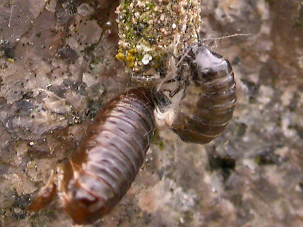 feed on lichens, algae and mosses and are to be found in larval form in rocks and tree trunks. Larvae live within a case, often covered