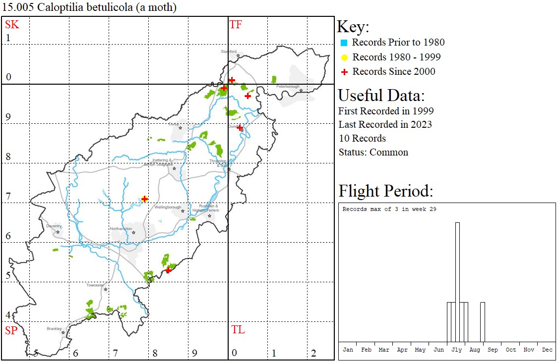 larvae initially mine the leaves of Birch, later in a rolled leaf.