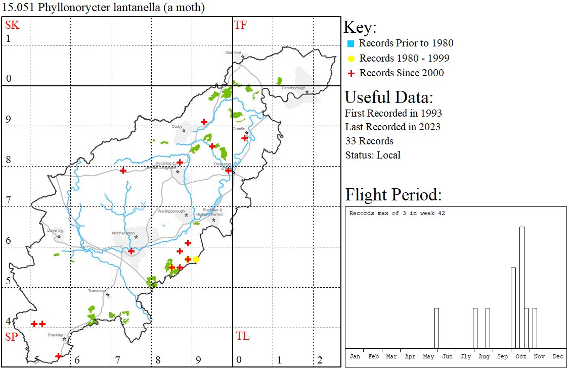 larvae mine the leaves of Wayfaring Tree and other Viburnum