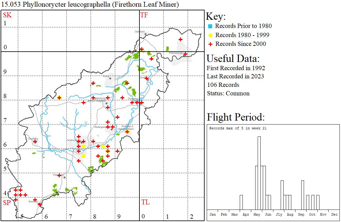 Observations: The larvae mine the leaves of Pyracantha.