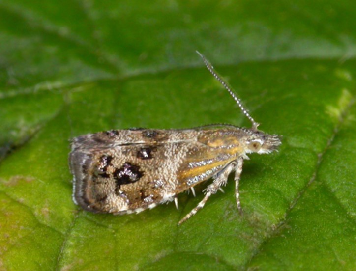 Observations: The larvae feed within a loose spinning on Fleabane, and the adults can sometimes be seen nectaring on this plant. Adults will attend light traps sparingly.