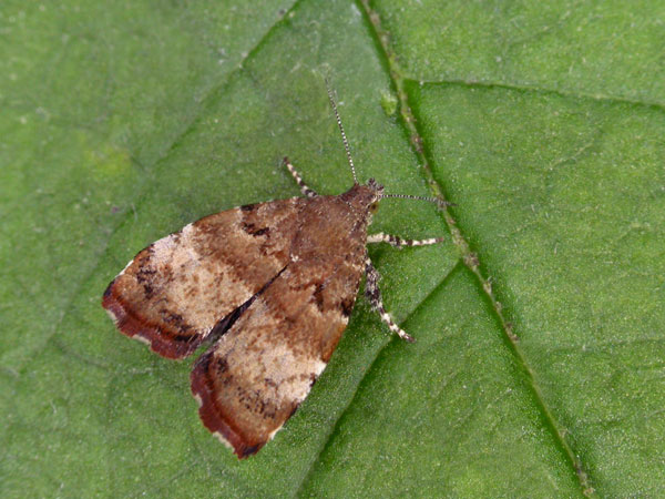 the larvae feed on the upper surfaces of the leaves, resulting in