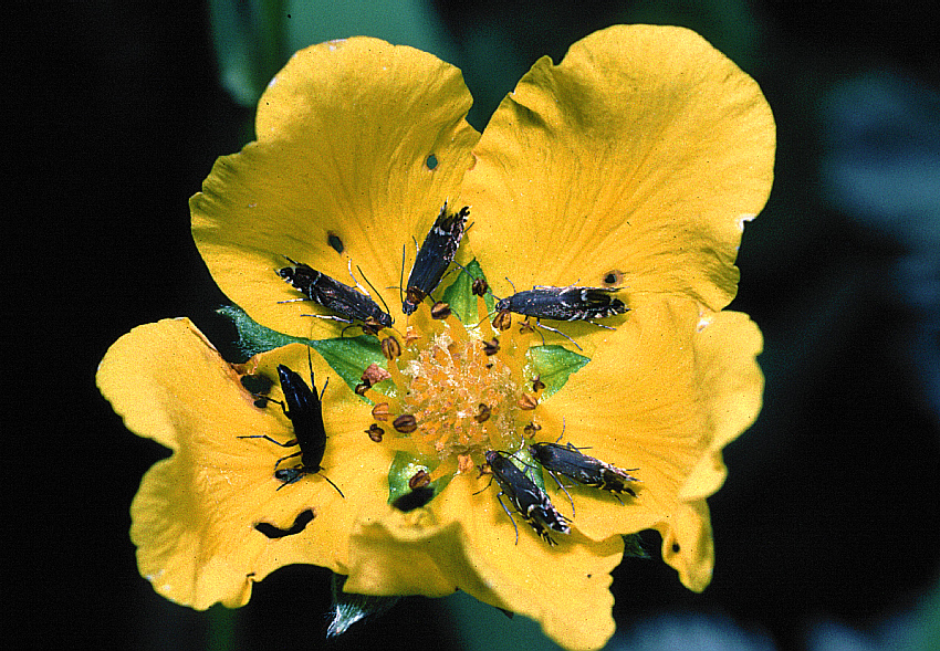 frequently encountered as adults by day on flowers of Buttercup, sometimes