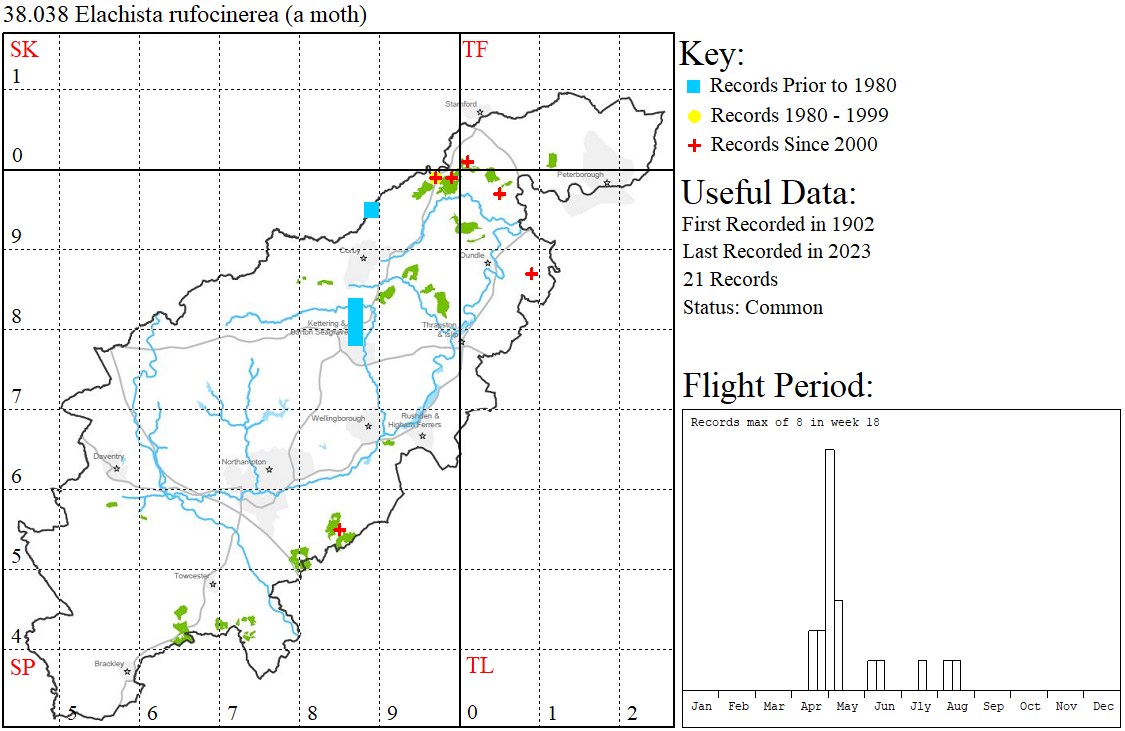 mine the blades of Grasses. Adults can be seen flying at dusk in suitable