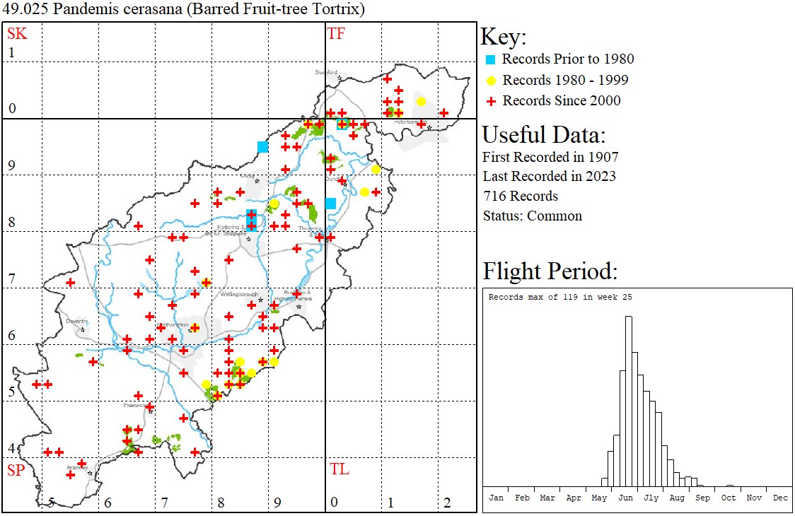 Ash, Oak and Prunus. Often seen in garden light traps.