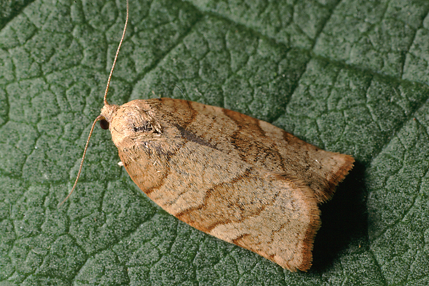 feed within a leaf-roll on a number of shrubs and trees such as Hazel,