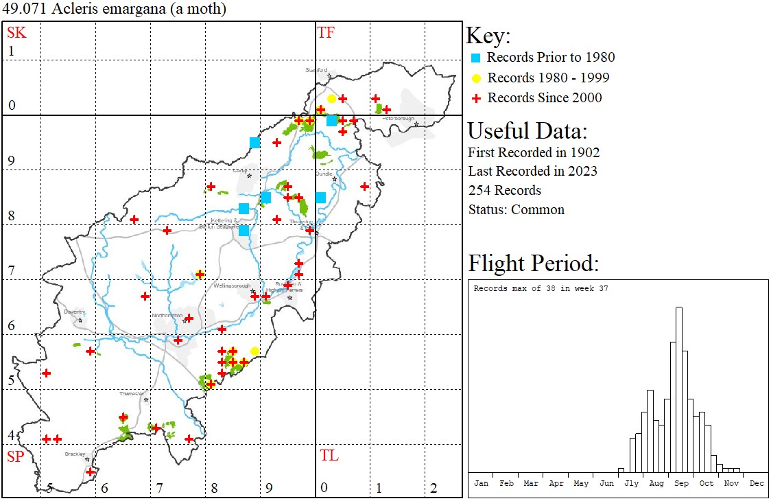many places. The imago very closely resembles a dead Hawthorn leaf,