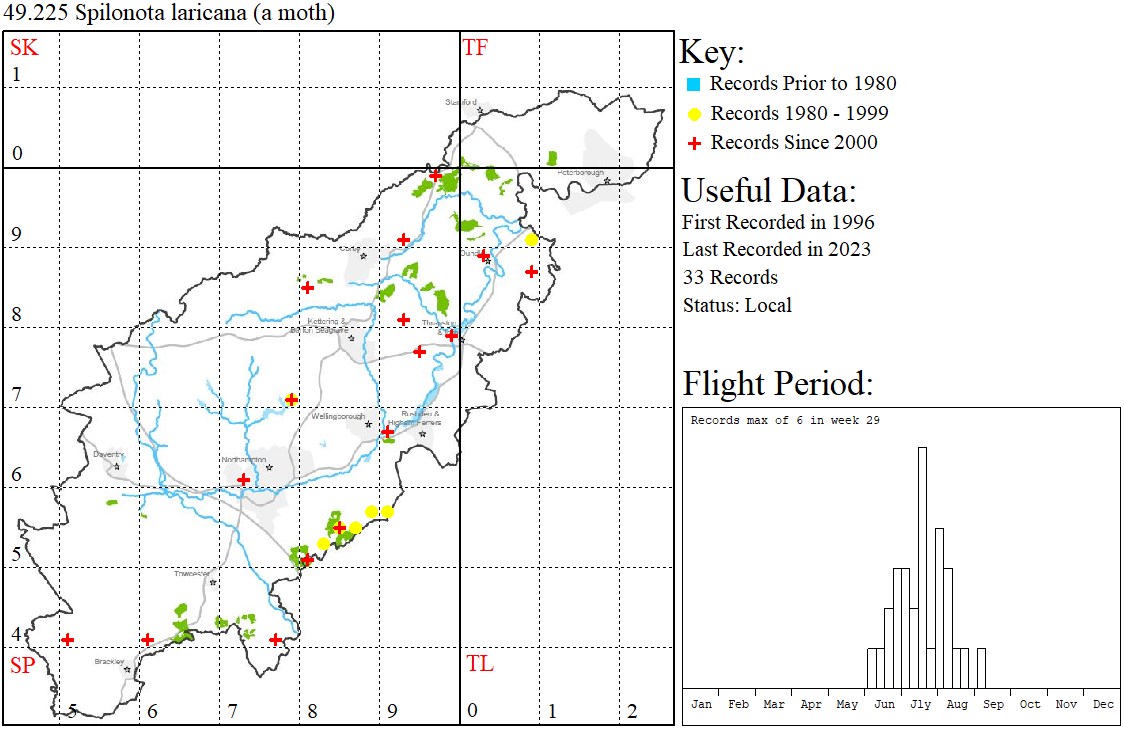feed on various Larch spp, also Sitka Spruce, mining the needles and