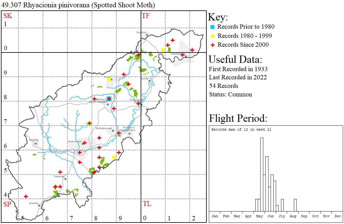 Observations: Larvae feed within the shoots and buds of Scots Pine.