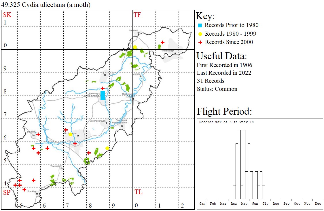 feed in the seedpods of Gorse and Broom. Adults (particularly males) fly by day but do