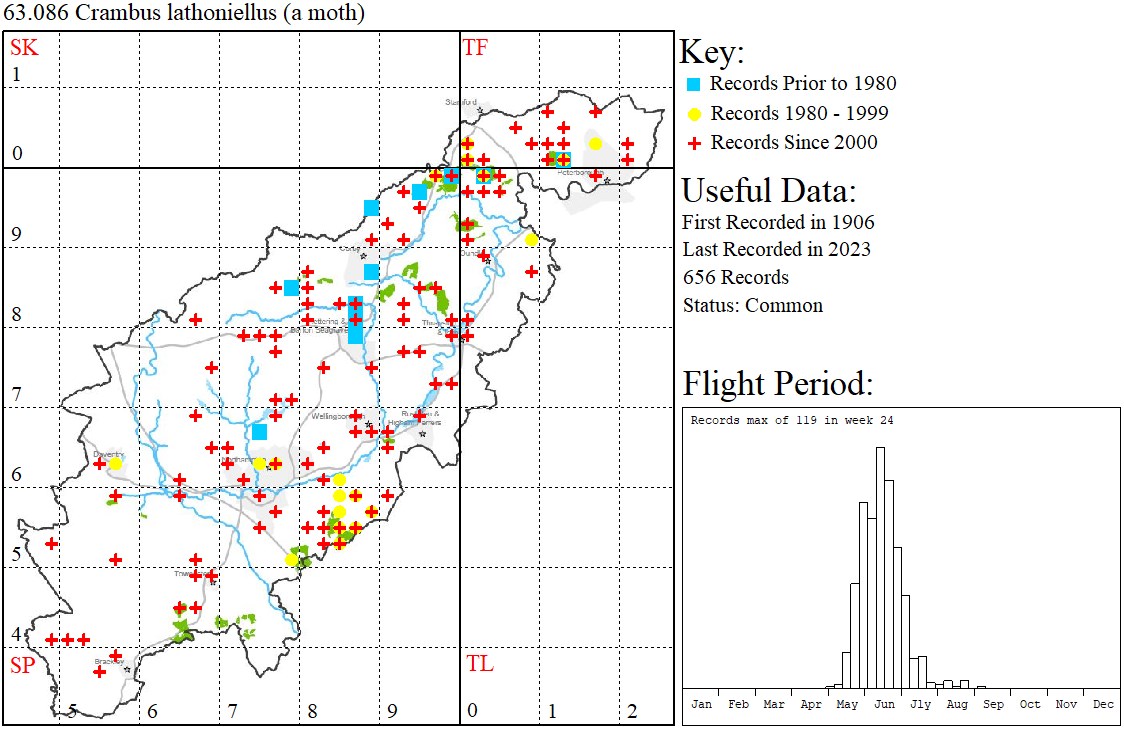 Adults are easily flushed by day and attend light traps.