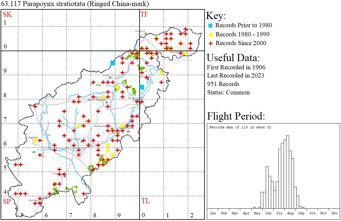 aquatic larvae feed on various water plants such as Pondweeds. The