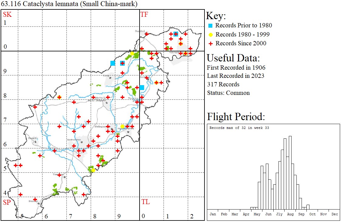 semi-aquatic larvae feed on Duckweed. Adults are sexually dimorphic,