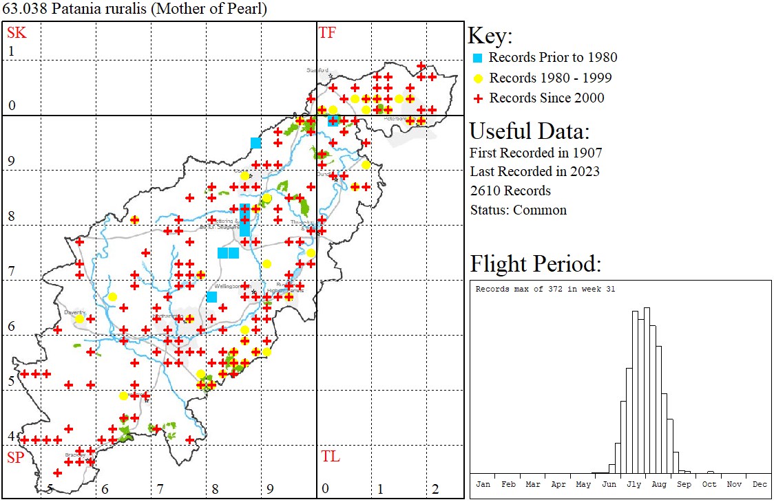 Observations: Larvae feed on Common Nettle. Adults are commonly seen in light traps.