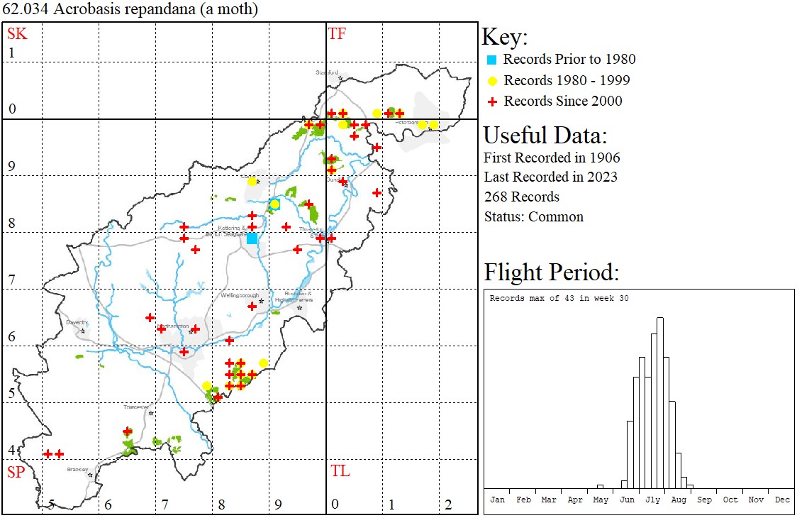Care needed to separate from e.g. Acrobasis advenella, Acrobasis