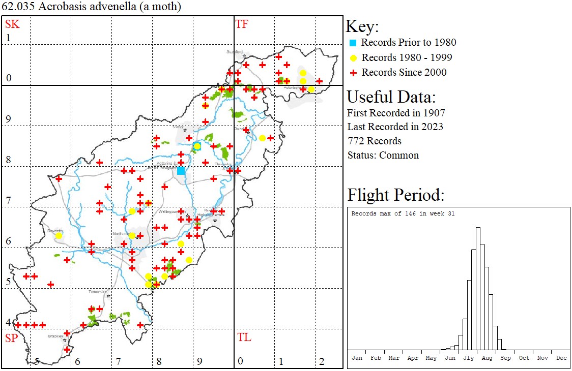 Care needed to separate from e.g. Acrobasis suavella, Acrobasis