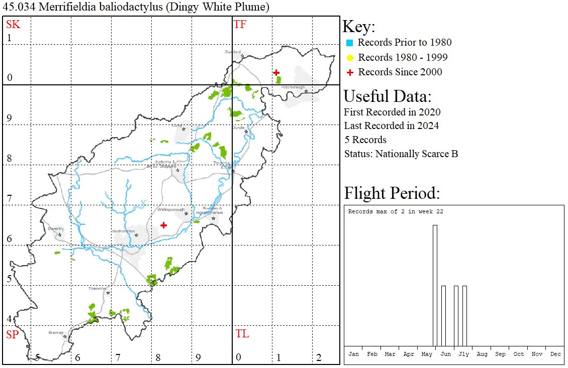 feed on Wild Marjoram, overwintering as a part-grown larva. In spring larvae may be found by investigating drooping/wilting plants of Marjoram with the larva feeding on the wilted leaves. The adults are easily kicked-up in the daytime, and also attend light.