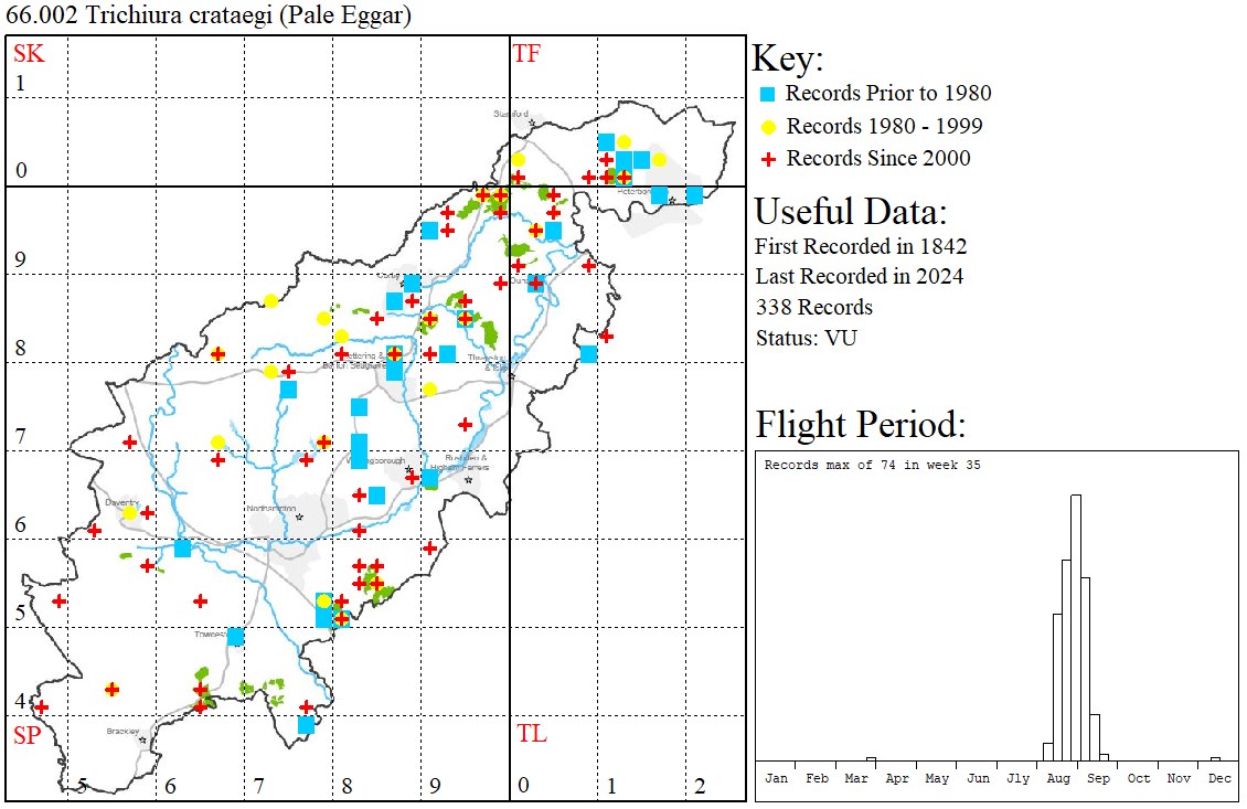 Kettering, Wellingborough, Barnwell Wold. Not common.