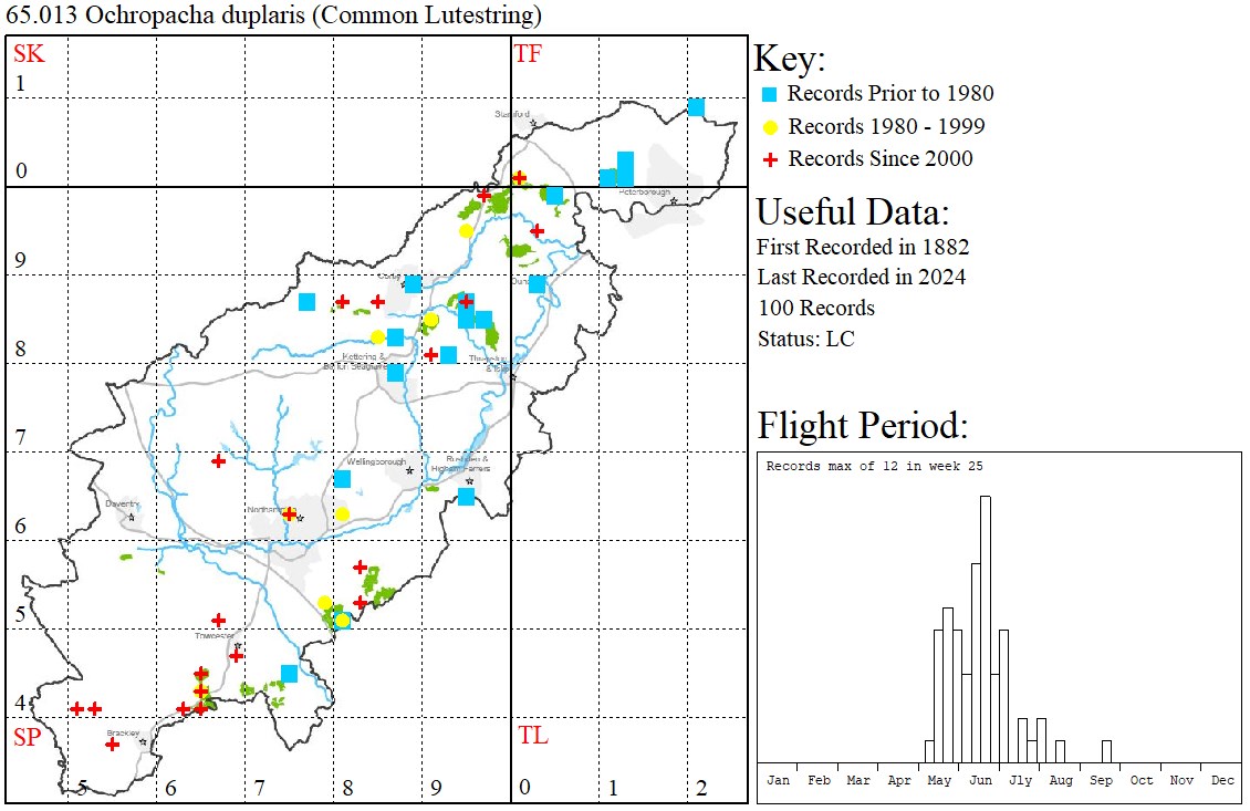 show that I saw the moth in Northamptonshire in six years