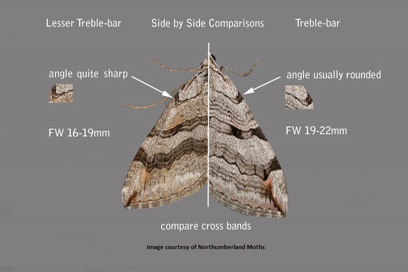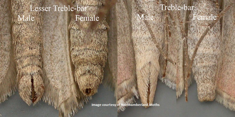 Treble-bar - upper-wing markings are a guide only, and determination MUST be made from examining the tip of the abdomen as per the image over.