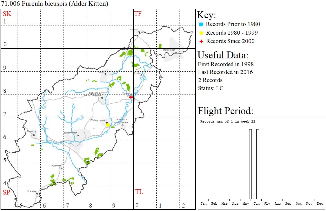 empty cocoons have been found on alders at Castle Ashby and Lilford