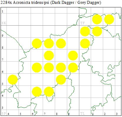 adults of Dark Dagger (A. tridens) and Grey Dagger