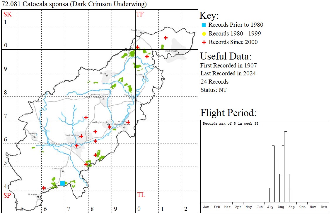 found on a tree trunk. Until 2020, this was the sole record for VC32, at which point a further two examples were recorded during September, at widely differing locations. The species had appeared to increase its range in the years leading up to these two records, having been recorded in neighbouring Vice Counties (including Bedfordshire, Cambridgeshire, Leicestershire).