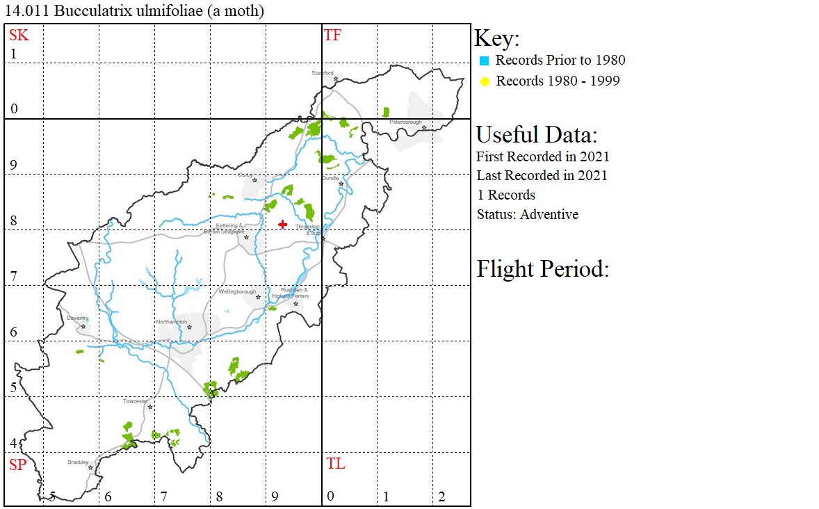 larvae mine the leaves of Elm. Until quite recently this species was only recorded from a couple of sites in Surrey, but has been noted in other Vice Counties in the last couple of years. I am aware of records in Bedfordshire (VC30), Cambridgeshire (VC29) and Huntingdonshire (VC31).